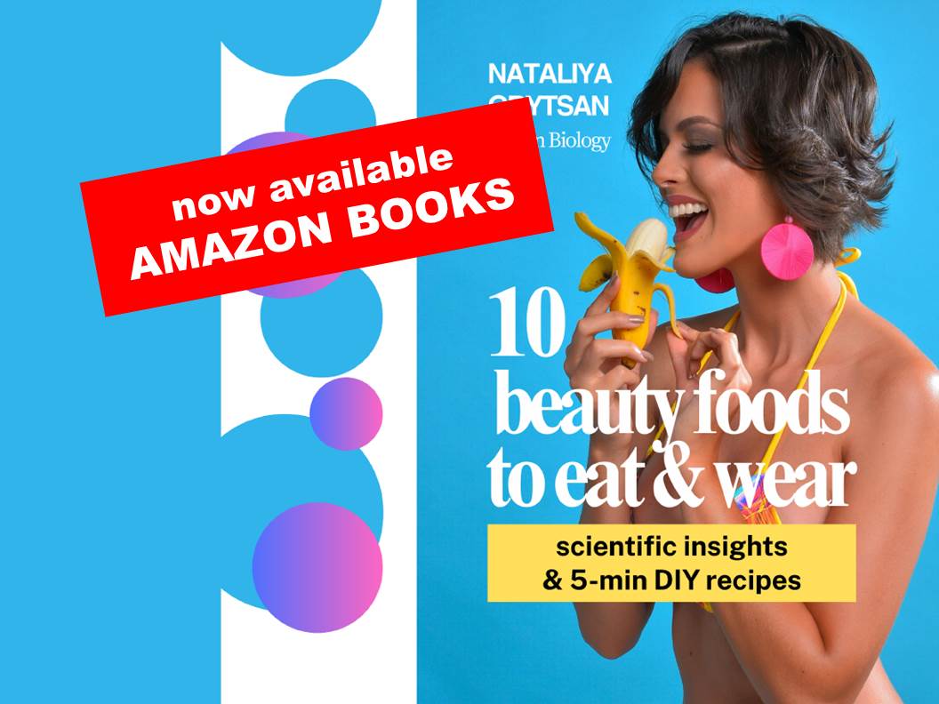 10 Beauty Foods to Eat & Wear is more than just a book – it’s a fresh philosophy of beauty rooted in science, simplicity, and joy. Written by Nataliya Grytsan, PhD in Biology, this delightful guide invites you to nourish your skin from the inside out with ten powerful foods that do double duty – with one quick recipe you make a single action serve two purposes: you eat your breakfast and wear it too.